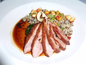 From there it was time for mains and while my two other dining companions both went for the beef, I couldn’t go past the Duck breast, quinoa, silverbeat, goji berries, pepper, caramel ($42.00). Again, their presentation is really lovely, albeit I was slightly bemused by the inclusion of popcorn in my upmarket meal. I suspect its one of the new ‘in’ things….. like micro herbs and chocolate soil. But hey texturally, the popcorn did work well with the quinoa, and both had been well seasoned. On to the duck it was cooked to pink perfection, just melted in your mouth. Very nice. I really enjoyed my mains.