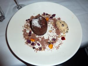I ordered the Chocolate fondant, chocolate soil, vanilla apples ($19.00), a rich, indulgent chocolate fondant, which had been trendified with the dusting of chocolate soil and a few pretty flowers scattered here and there on the plate. Quite the vision to look at and equally as magic to eat. Rain outside and a warm chocolate pudding is an incredibly decadent combination.