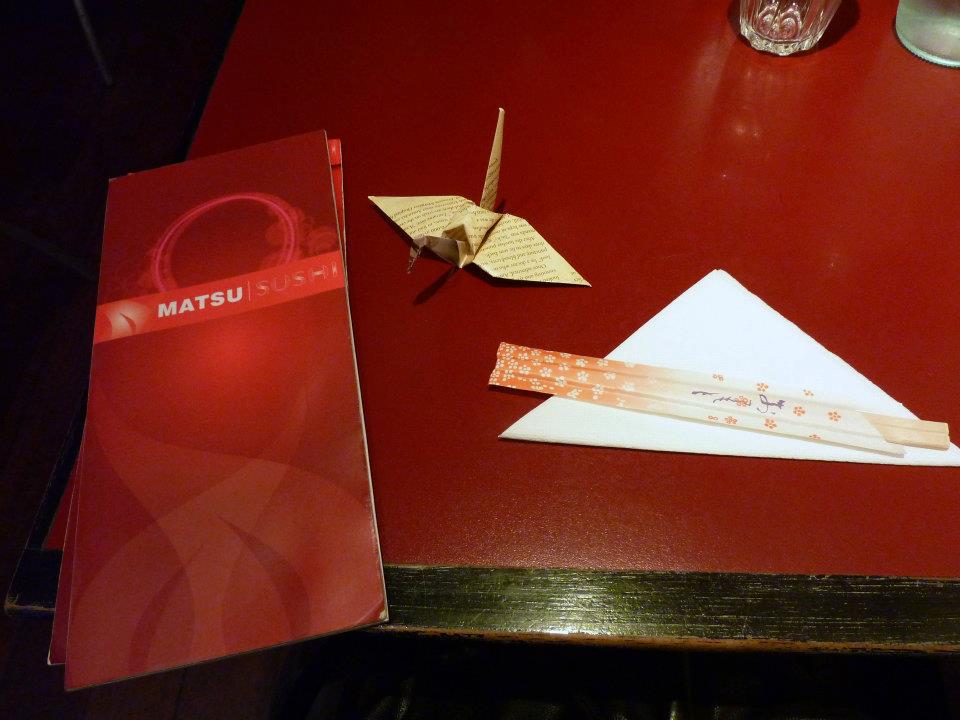 Particularly with the eclectic collection of Japanese pictures on the walls and the dainty origami birds that are placed near each pair of chopsticks on the table. It was all very cute.