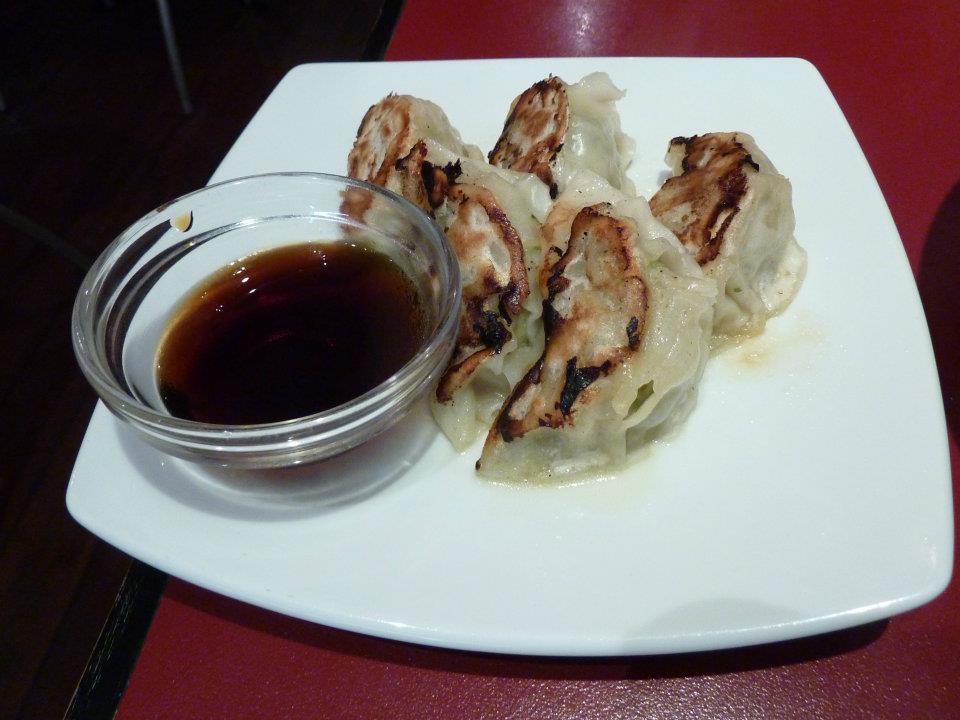 They are licensed and had a few choices available, so I sipped on a glass of white, while we waited for our meals to arrive. It didn’t take too long and soon enough we were presented with very generously large bowls filled with steaming soup, an abundance of noodles and a stack of vegies. Then neatly plated on the side were 5 delicious gyoza, with their own little dipping sauce.