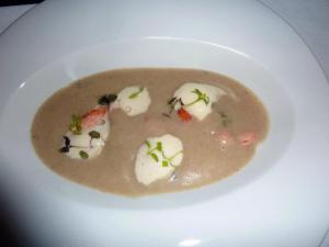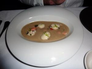 Across the table, GG had gone for one of the new additions to the menu, the Jerusalem Artichoke Soup, House Smoked Salmon, Horseradish Foam. Against, wonderful presentation, with the salmon and a few greens artistically displayed and then the soup dramatically poured into your bowl at the table. I like a bit of drama with dinner. I was lucky enough to try a spoonful of this soup, both by itself and then with some salmon and it really was amazing. Ideal for the wintery weather and just so full of flavour.