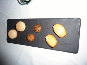 With dessert completed we were both feeling very satisfied with our selections, but there was one more plate to get through. The delicate little petite fours – a macaron, a truffle and a madeline. Thankfully I had a little room left 🙂