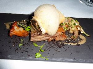Now perhaps I had decided to make June a particularly lavish month and had actually visited Petite Mort’s the week before, for a wine dinner they held with Single File Estate. I mention this because there was a particularly tasty course that night that I got to experience again at Largesse. Todd Stuart from Petite Mort’s course was Pressed duck thigh, chanterelle, cep. I love duck, especially when its well prepared and this completely hit the mark, with the decadent inclusion of some of the more top end mushroom set. Yum. I would eat that every Monday given the option 🙂