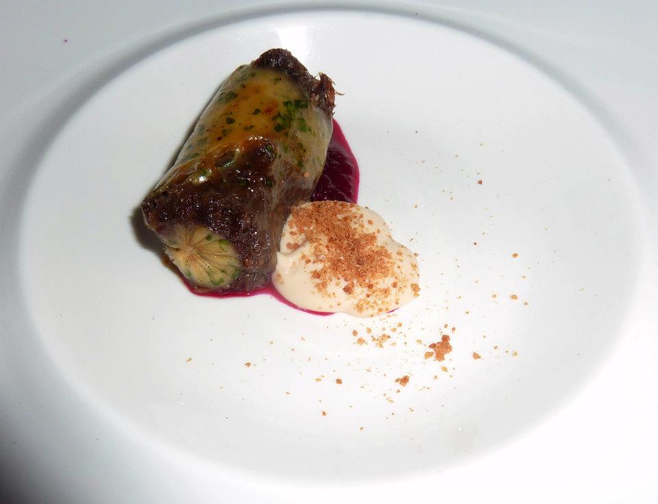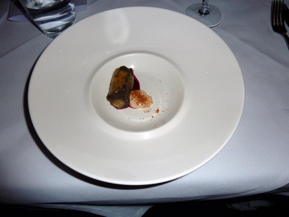 Next up was something for the meat fans among us with Braised venison shin, foie gras espuma from Clarke’s of North Beach. Perhaps this dish wasn’t quite as pretty as the others, but still the care that had gone into that delicate parcel of meat was apparent and it was delicious. The venison just fell apart in your mouth and what a perfect partner the foamy foie gras espuma was. I’ll be the first to admit that I had no idea what an espuma is before this meal, but after some quick iphone googling on the evening I now know it is basically a foam. A very tasty foam at that.