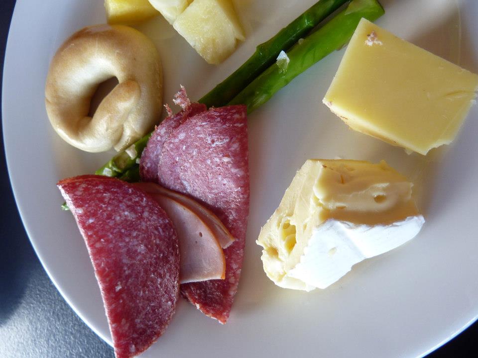 I was by no means starving at this point, but there was a few final items I fancied trying so I wandered back inside and selectively placed some on my plate. This was more of a salute to the more European options….. cheese and cold meats and perhaps even a nod to the states with a baby bagel. It wasn’t a bad way to end. I have a lot of time for ham and salami and even more for cheese. Ahhhhh cheese – you are a wonderful thing and how indulgent to be able to slice of a chunky piece of brie and smush it on your bagel. Good times.