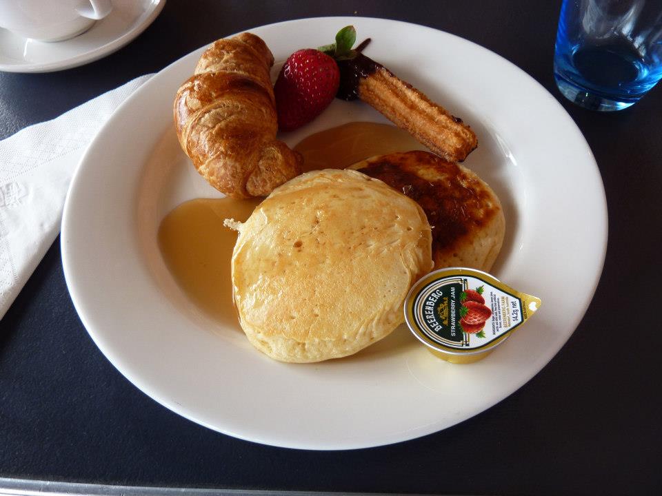 It was time for something sweeter, so I decided I we should partake in a pancake or two, a small croissant and also a churros, because they were there and why not 🙂 The strawberry was my token fruit.