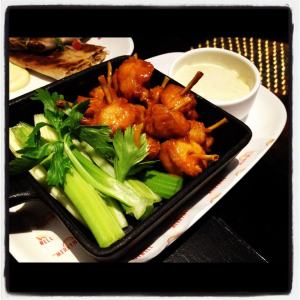 Our next orange texted menu item was the highly anticipated Lollipop Buffalo Wings Blue Cheese Fondue, Celery Sticks ($21). They looked entirely precious and how in the world did they make these little bubby wings?? It was like magic with their tiny little bone handles and they were just bursting with flavour. The right amount of spice and then a dip into the creamy blue cheese sauce and ooo la la you were set. These were easy eating little morsels. Very easy to work your way through a plateful – yum!