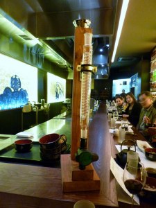GG and I were the first to arrive for the Tuesday night soft launch and when the door swung open there is a real wow factor to the fit out. The wall adorned with sake bottles, the vast murals behind the chefs and the shiny new hot plates – it was all very impressive. We were seated at the end of the restaurant, which actually meant we had a great view of proceedings, though it is worth noting that all the seats are close to the action. It’s intimate dining at its best.