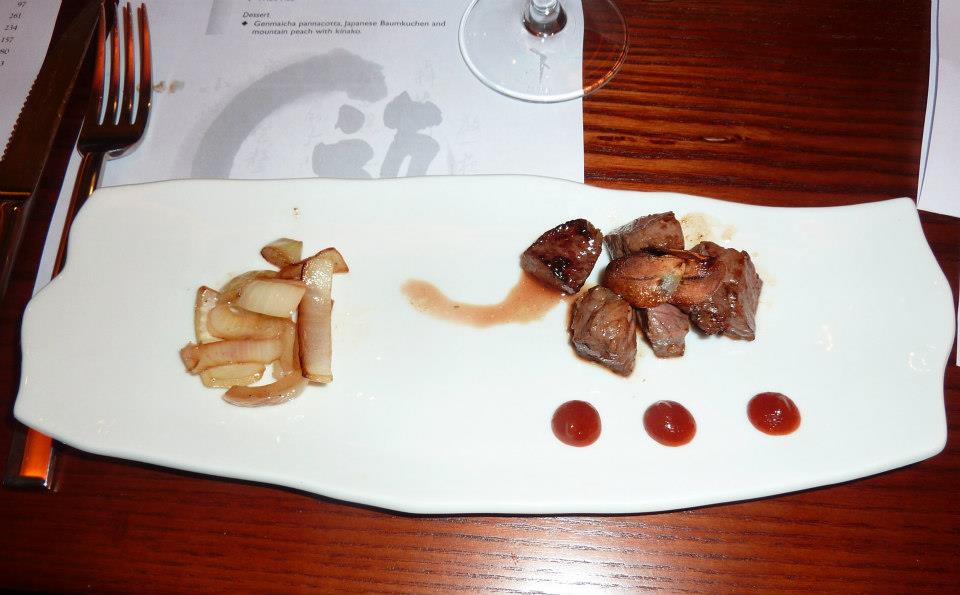 Time to bring some poultry into the mix with Quail twice cooked with pomegranate sauce. I love quail. They are such a fiddly bird to deal with, which is why I think its always so lovely when someone else has done the fiddly work for you. The half quail was served with this intense pomegranate sauce that had the right amount of zap to it. On the side of the quail was a ratatouille. Initially I had thought this was quite a different pairing, but the chef clarified that it was actually an edamame ratatouille, which added that Japanese flavour to a dish more traditionally seen on the Italian food scene. And it did taste beautiful!