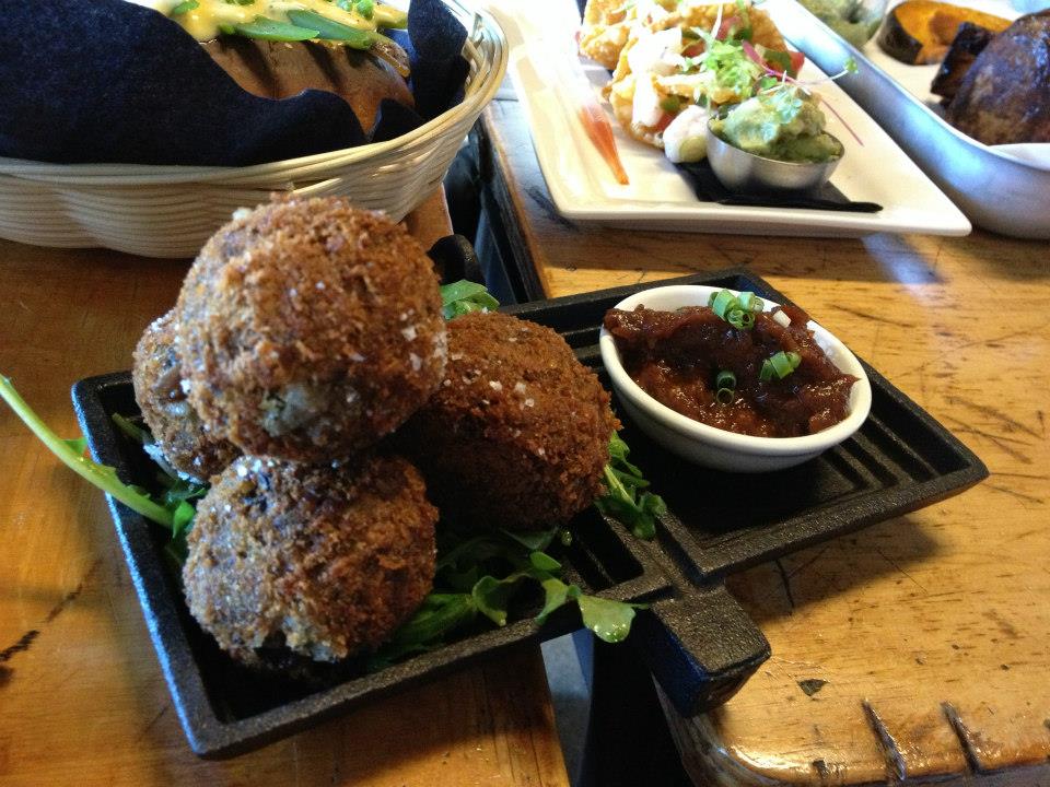 So what did we order… couldn’t go past the Wild mushroom arancini (x4) + tomato jam ($12). I’m a long time aracini fan and I was pleased to see them on the menu. However it was probably the tomato jam that added the punch on the flavour side. The rice balls had a nice crunchy coating but were a little bland by themselves, perhaps just needed a little more seasoning was all, but hey they were teamed with the tomato jam for a reason and by their powers combined it worked a treat.
