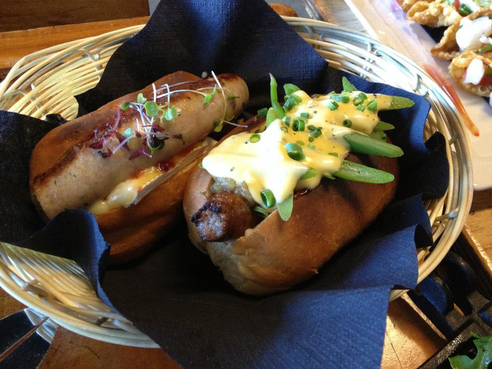 Up next we decided to sample another new item, the Sports Day Dogs (one of each) ($15) – Beef and shiraz, onions and bernaise and Chicken and sage, brie and cranberry chutney. GG carefully cut these in half for us and we dug in. I started with the beef and it was really interesting – especially with the crunchy green beans and the creamy bernaise sauce and they were really nice snags. The chicken sausage was equally as tasty and I liked the sweetness from the cranberry. They were by no means just run of the mill hot dogs and definitely well matched and delightfully different combinations of flavours.