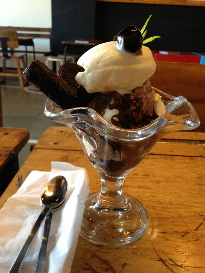 We had a little extra room left though and one other new menu item took our fancy – Old-school Brownie ice cream sundae, liquid chocolate, praline and Amarena cherries (perfect to share) ($14). Hard to say no to a sundae! And it did look just pretty as a picture when it arrived – the large brownie pieces, oozing with chocolate sauce, plenty of cream and topped with a cherry or two. Indulgently fabulous and definitely designed to share, would be a little rich to tackle solo!