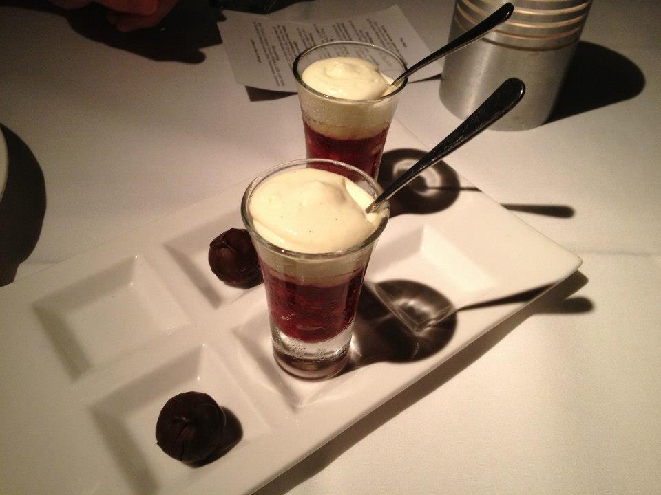 So what was for dessert? Sticky black rice pudding, torched fruits, coconut & gin with Dom. Pichot ‘Le Marigny’ Vouvray Moelleux 2009, Loire Valley. I was even spoilt with a happy birthday message scrawled in chocolate. A lovely touch. Now I’ve never been a massive fan of rice based desserts and I wouldn’t say this one pushed me into the ‘big fan of them’ camp, but it was pleasant enough and I quite liked the coconut and gin sauce over the fresh fruit.