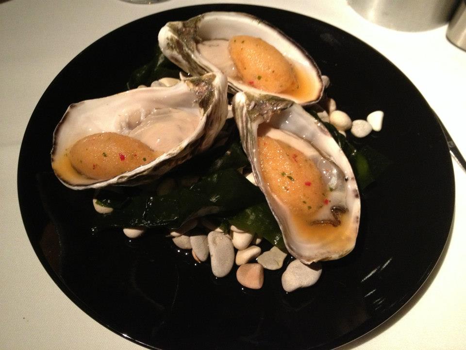 Being particularly spoilt we started the evening with a glass of bubbles and also an oyster each – complete with lime and chilli sorbet. They were perfectly chilled and so fresh! I think I may well become a fully fledged oyster fan yet!