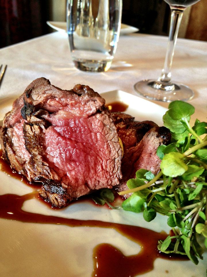 Across the table I have to say that GG’s mains looked delicious too! My steaking loving man had ordered the Black Angus Beef Fillet, Beef Cheek and Potato Pithivier, Watercress, Gremolata Butter ($45). The meat was perfectly pink and just looked divine!