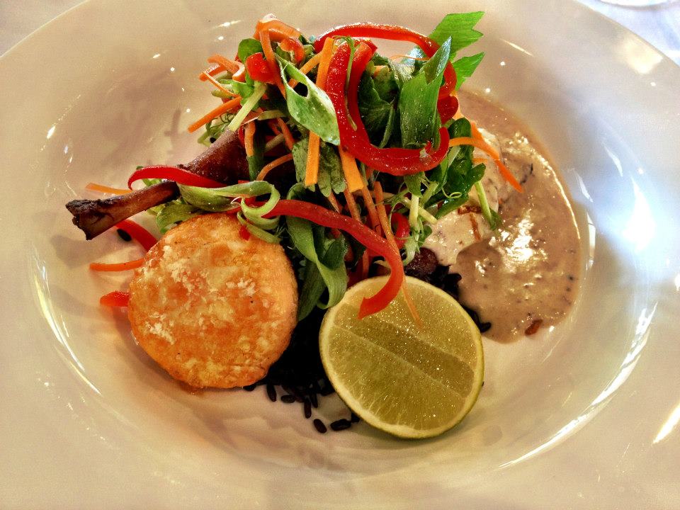 It was apparent that I had “won” the entrée round as I could see GG oogling the carefully arranged pile of pork and crab, along with lychees, tomatoes and coriander. It was visually beautiful and a wonderful array of delicate flavours. It was perfection on a plate.