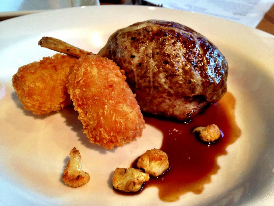 Wow – 7 entrees in and perhaps team taster was slightly daunted (though entirely excited!) by the 7 mains that lay ahead. An Aussie favourite arrived first – lamb. Amelia Park lamb crepinette, corn croquettes, spiced cauliflower. It definitely looked interesting and as we cut it into shareable pieces we could see that it did combine the cutlet along with some minced lamb and mushroom duxelle. It. Was. Amazing. The rich flavours from the duxelle along with the lamby goodness of the lamb. Each bite was a pleasure. Further enhancing my appreciation of this plate were the little béchamel and sweetcorn croquettes. Yum!! Bit of croquette, bit of lamb, a dainty cauliflower floret – happiness. One of my favourite dishes of the night.