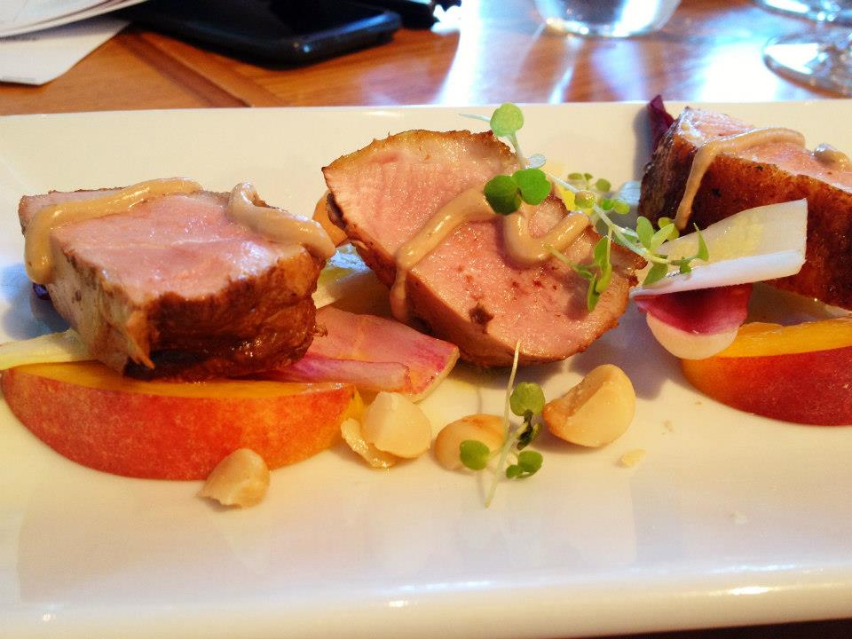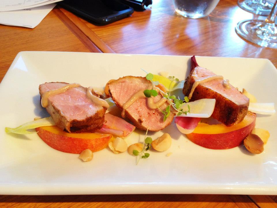 I am a massive duck fan. Cooked well, it is delicious and this dish really showcased the magic of duck. Smoked duck breast, macadamia nuts, peach, witlof. There was a strong smoky flavour to the duck pieces that was well countered with the sweetness from the fresh peach slices and also a pleasant textural crunch from the macadamias. I haven’t often eaten duck cold either, so it was nice to try it prepared this way. It was still slightly pink and not dry, which had been my one worry about a cold duck dish. I need not have worried.