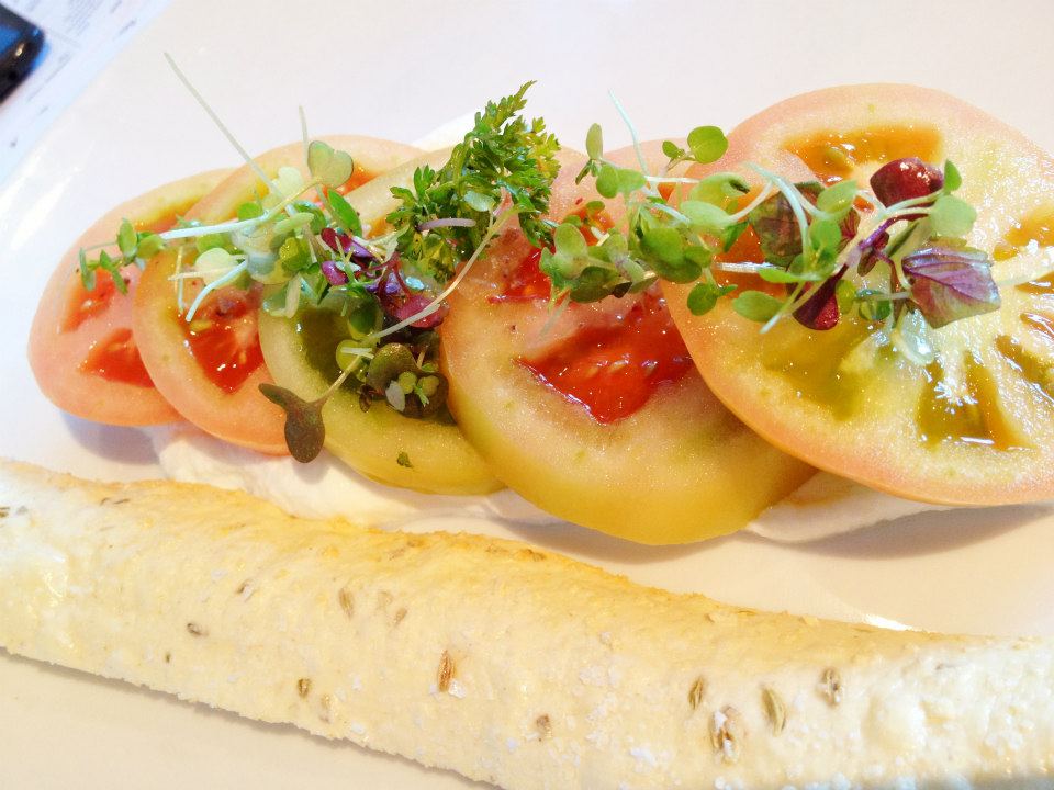 First off we were brought some beautiful freshly baked bread. There was sliced French baguette,delicious olive rolls and a sliced up Gluten Free loaf. Served with the bread was Cooladerra Virgin Oil and beetroot balsamic, some butter and two types of salt. One was a more frequently seen flaked white salt, but there was also some black salt from Cyprus. It was a nice contrast sprinkled on top of the butter and had an intensely salty taste. I’m a salt fan so I was definitely on board. I was curious as to how it gets its black colour. A quick google suggests that it is blended and coloured with activated charcoal. The perfect decorative sprinkle for bread.