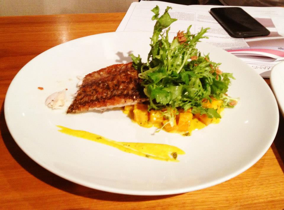 We sampled another side at this point, Broccolini, harissa, dates, pinenuts. They know how to cook their greens at Mosmans. Plenty of life still in them. I particularly like that it was served on Chef Paul’s very tasty harissa and sprinkled with some pinenuts. Nice!