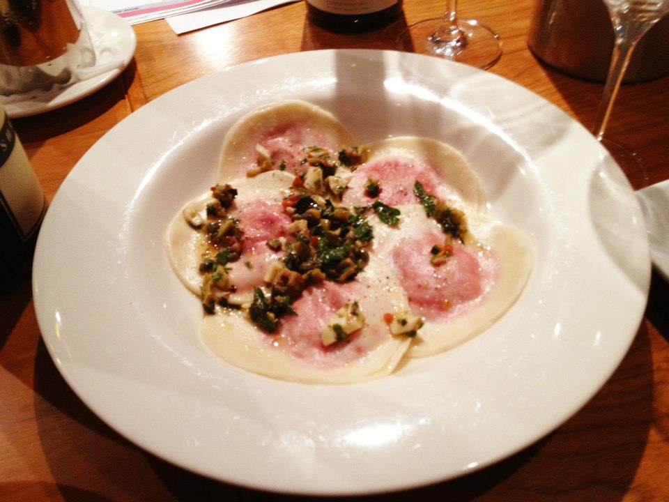 And almost as if to further test the boundaries of our struggling stomachs a dish that was not on the menu arrived for us to sample. It was a pasta dish. Beautiful freshly rolled pasta, filled with bright beetroot and decoratively topped with capers and a splash of olive oil. It balanced sweet with salty, with a slight slant towards the salty and the divine wonder of fresh pasta. How good is it? Why don’t I make it at home more often!