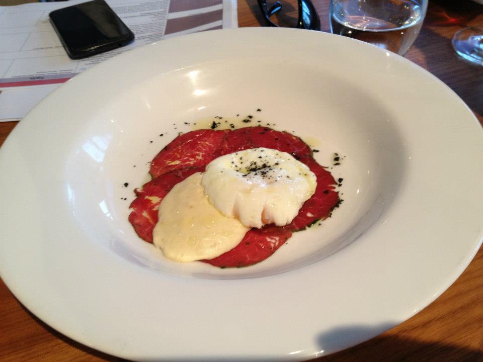 The last entrée was a beautiful beef Carpaccio, served with a poached egg and a potato foam. There were also some strategically placed dots of truffle oil. Ahh the heady smell of truffles, always a treat. I had found it peculiar that Chef Paul seemed to keep his distance from the table when this dish arrived. As I learnt from the notes provided he has a pretty serious allergy to truffle oil so keeping a wide berth from the plates was a safety requirement. We wanted to help him out so we wolfed this delicious dish down in record time. A very strong potato taste in the foam and the beautiful indulgent running yolk, along with the melt in your mouth, paper thin Carpaccio, it was a really delicious blend.