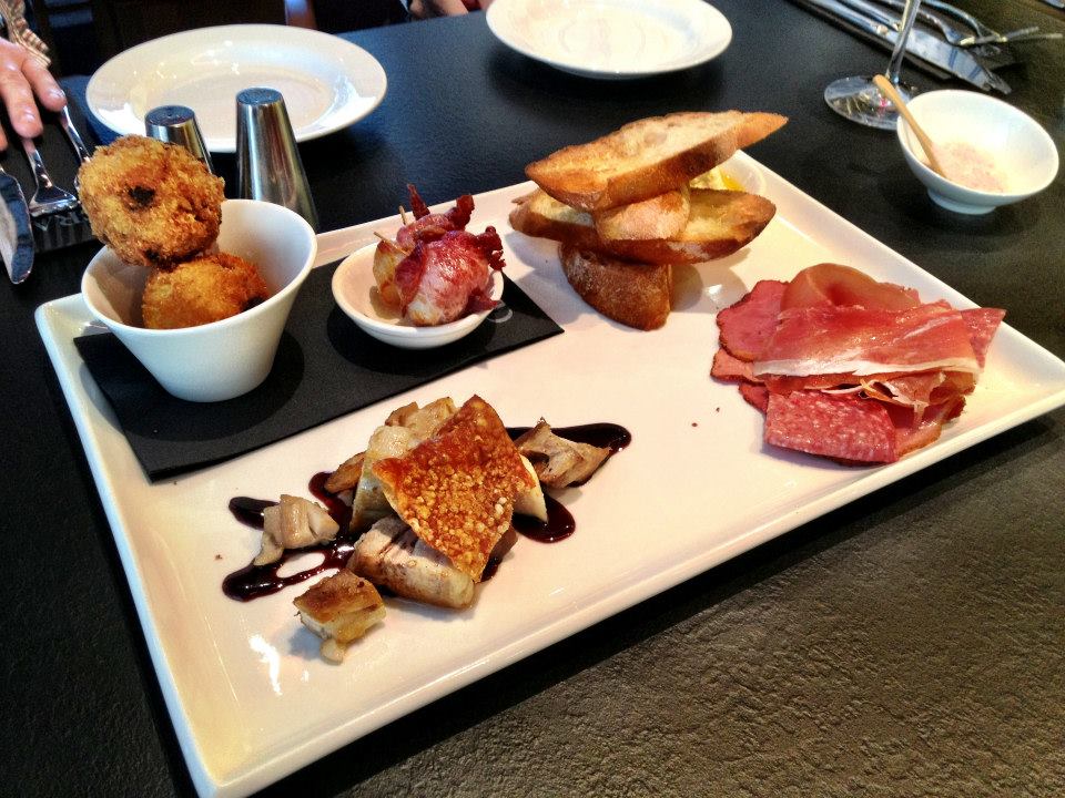 We decided we’d share one of the tasting plates to start. Included was Pork Belly, Porcini Mushroom Arrancini, Scallops wrapped in Prosciutto, Selection of Cold Meats, Persian Fetta and Ciabatta ($23.90). It looked ok. Probably wasn’t the most impressive tasting plate I’d seen before but hey the test is in the tasting. I love arrancini so I started with one of those. The flavour of the risotto was pleasantly mushroomy but there were a few grains of rice that were quite chewy, which was a little disappointing. The pork belly was nice and I quite like the sweet, sticky sauce that they had dramatically wiggled on the plate beneath it. There were only two scallops so I left those to the fellas to enjoy. It looked like they were wrapped in quite thick bacon. A bit old school and all the more so with the tooth pick holding the bacon in place. Perhaps they were going for retro chic. I’m a big fan of cold meats but there was nothing particularly wow about the selection that they had chosen. Really just tasted like regular salami from Coles and while I’m not entirely sure how they could have gone about making it present better I think they could have made it look more aesthetically pleasing than the pile that arrived. The toasted ciabatta slices were really nice though and especially with some of the melt in your mouth creamy Persian fetta on top. The cheese was my favourite part of this plate I’d say.