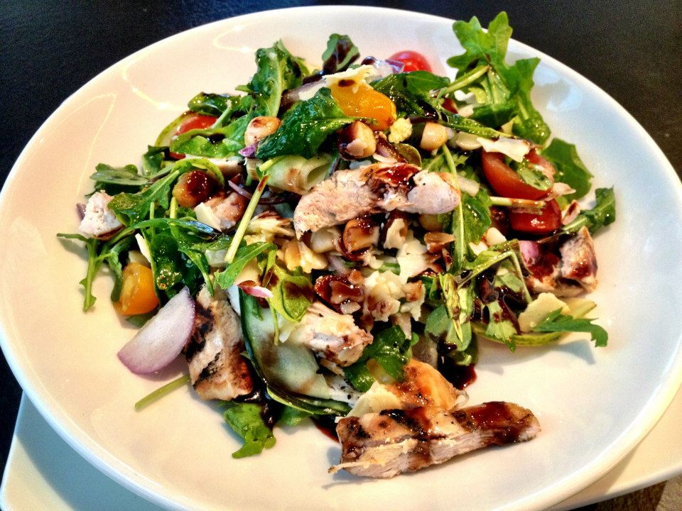 So I can’t say it had been an overly impressive introduction to their food offering and there almost seemed to be a bit of a disconnect between the beautiful modern venue and the style of food they were serving. For mains I opted for the Chicken, Pear and Macadamia Salad – Grilled breast, nashi pear, macadamias, parmesan cheese, rocket, red onion, cherry tomatoes, sweet balsamic and mixed berry vinaigrette ($17.90). It was a really good salad. Plenty of wonderful fresh ingredients and lots of lovely bits of chicken breast. I particularly liked the delicate thin slices of nashi pear, it added some refreshing sweetness to the mix. I thought the dressing was good too. Not overly heavy. In all, my salad had me back on side with Grand Central Park.