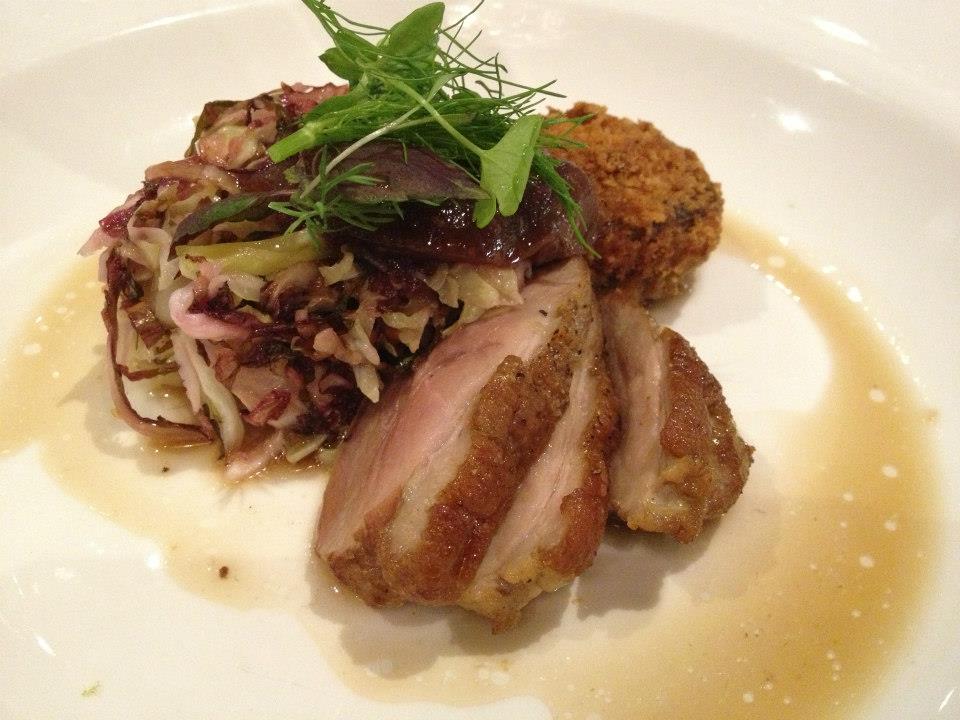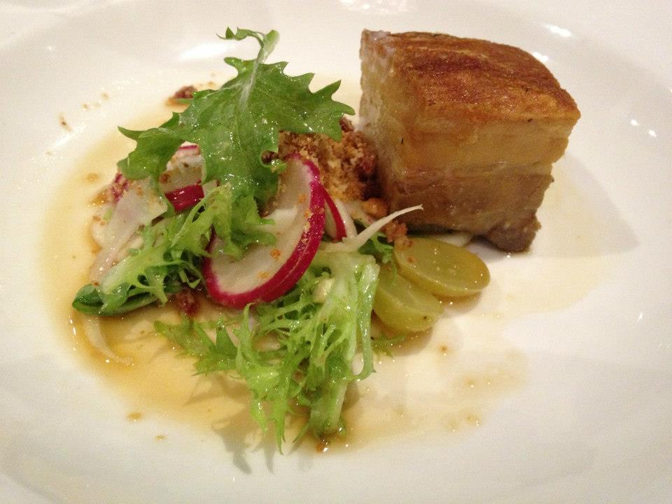 They definitely had me back on side with the next course though – Slow cooked free range pork belly, cauliflower cream, pickled grapes, radish and jamon crumbs. It was incredibly delicious pork and it was so well matched with the decadent creaminess from the cauli. I also thought the pickled grapes in the dish were a tasty inclusion that also tied in well with the region, where there are abundant grapevines.
