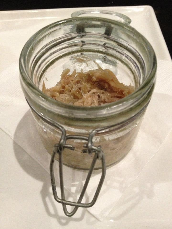Baldivis rabbit rillette, pickled rhubarb, almond milk and sour dough. I saw rillettes in the description of the next dish and I’ll admit I was a little wary after my experience with the salmon rillette. I need not have momentarily stressed though. I really enjoyed the little jar of rabbit that arrived. It had plenty of flavour and the combination of some of the shredded rabbit, along with the crunch and zesty zap from the pickled rhubarb on top of some of the sourdough with a smear of almond milk – it was a winner!