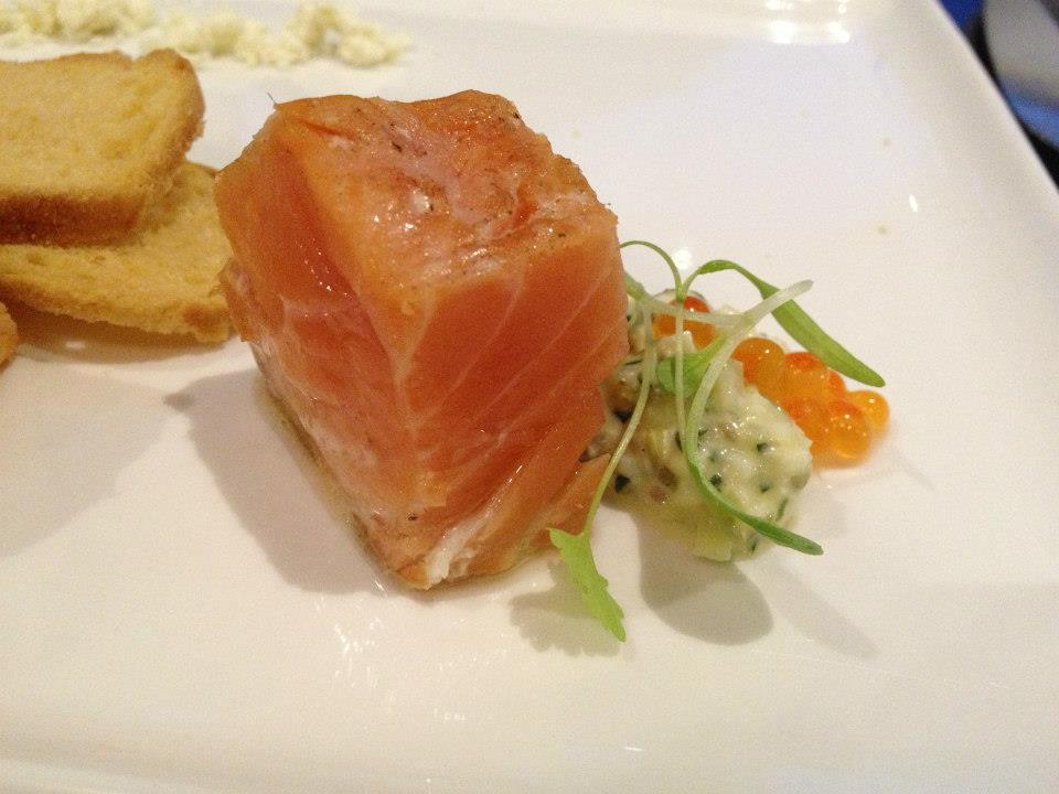 On this evening, given that taxis are a little harder to get in the South West I decided I wouldn’t match wines and would leave that to the birthday boy. On the food front we started with a very tasty Amuse Bouche – a large tiger prawn, wrapped in prosciutto, on a bed of corn and stone fruit salsa with a dramatic sprinkling of microherbs. The plump prawn was a great introduction to the kitchen’s talents and had us eagerly anticipating the next course.