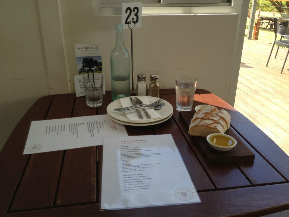 Now it was definitely time for lunch after what had been an ambitious intinerary of morning tastings. I was looking forward to visiting Hay Shed Hills for our lunch as I’d heard great things about their food. So we were dropped off at the door and shown to a specially assigned Top Drop Tours table.