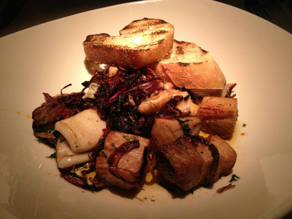 Similarly across the table GG had been impressed with the size of his starter. I was lucky enough to try a mouthful and it was quite a contrast to my dish. My entrée had quite delicate flavours, whereas GG’s was distinctly more bold. Now the squid was cooked to perfection, melted in your mouth and the pork was entirely delicious, but the strongest flavour was the charred onion. I didn’t mind it and am a long time fan of pork on my fork, but I think of the two I preferred mine.