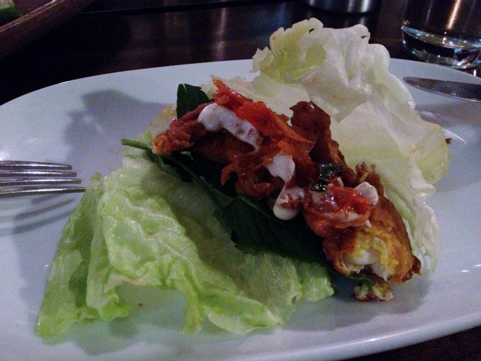 Second was the soft shell crab, kimchi, iceberg 19. With this dish it was a chance to make a very opulent san choy bow style experience, where the seasoned soft shell crab was the star feature.