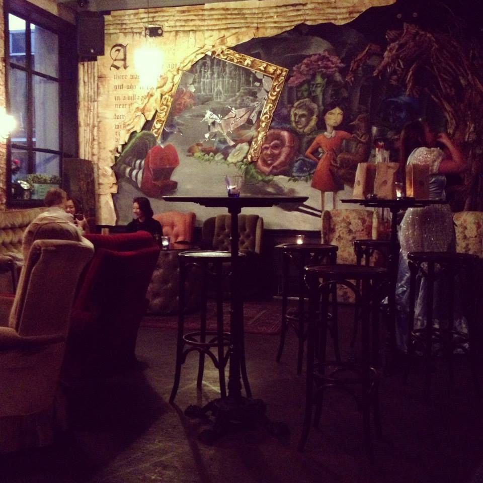 And I couldn’t agree with them more on their description of how the bar looks. It’s a quirky collection of plush chairs, leather chesterfields and antique lamps that somehow don’t look out of place against the more modern art work on the walls. Beware of the Big Bad Wolf!