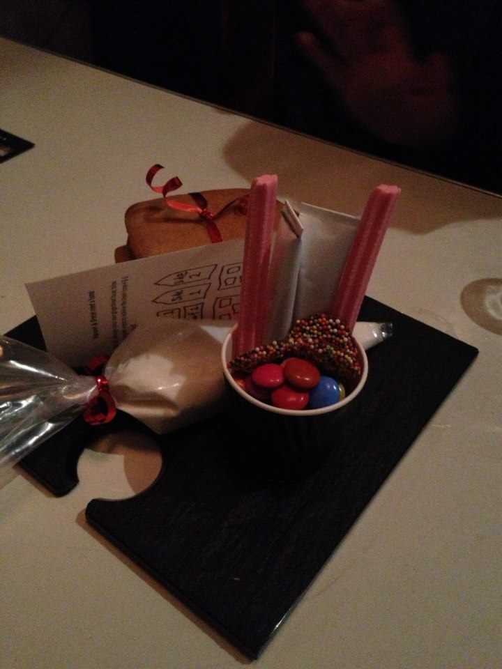 For the final course in our fairytale mission it was time to get hands on because Hansel and Gretel needed some help. So while sipping on a chocolate martini with popping candy we got to work with our DIY gingerbread house. We were provided with the gingerbread panels, a piping bag of icing to build our house and an interesting selection of lollies to pretty things up. It was fun, it was creative and it was delicious! I thought ours looked not too bad. I think I was helped by previous gingerbread house decorating experience I garnered at Christmas time. Unfortunately we didn’t take out the the ‘best house’ honours but I fully believe that we would have been a very close second.