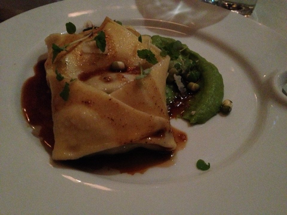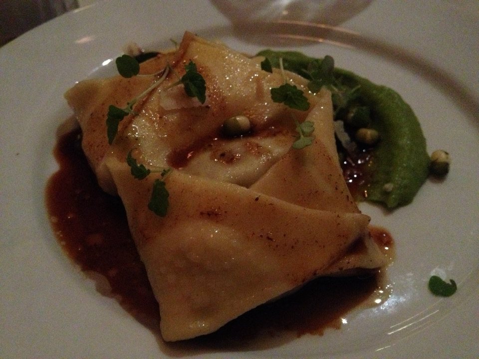 Now when you think of Jack you think of bean stalks so as expected a dramatic green smear of broad bean puree had been smudged on the plate along with cider braised beef tortellini. The slow cooked beef tasted amazing and was well matched with the flavoursome bean puree.