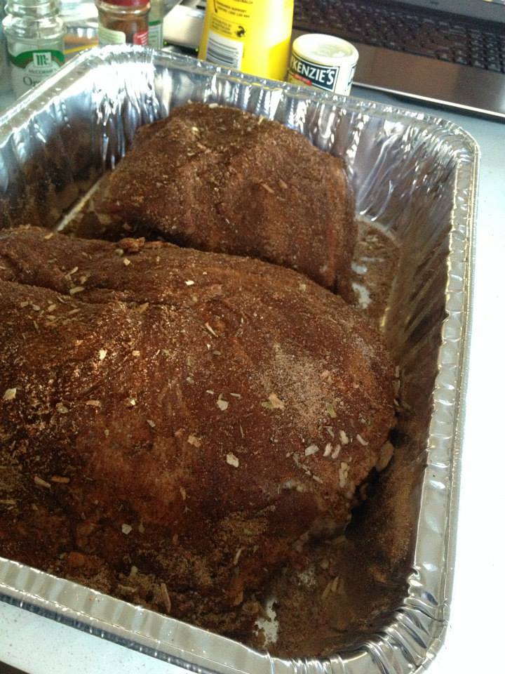 So the rub is on, the oven had been preheated to 100C, the time in 8am. Pop the tray in the oven and walk away. Ok before you walk pop a few tea towels on the floor in front of the oven, it is in there for a while and you don’t want it ruining any wooden floors.