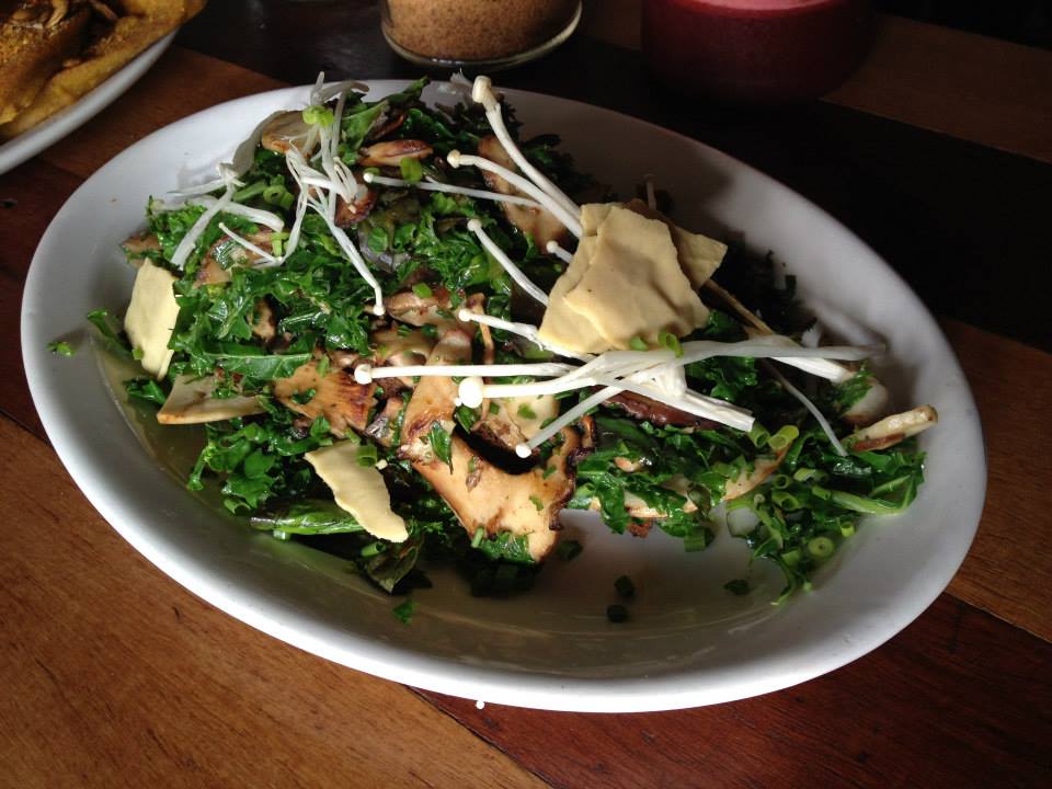 Now of the two dishes, I thought the mushroom bruschetta presented better. Was an impressive mountain of lots of different kinds of mushrooms, including my favourites, the enoki! For a while when GG and I were on this whole no carb kick I could convince myself that enoki were like noodles when I had them in a stir fry 🙂 Along with the mushrooms, there was a generous serve of kale, the latest cool, go to veg. And all this ample vegetation actually hid the slices of in house baked chia and quinoa bread. I’m not going to lie, I didn’t really love the bread, it was really dense and didn’t have a whole lot of flavour. When combined with some of the mushrooms and kale it was slightly more appetizing. Overall it wasn’t bad but wasn’t overly punchy in terms of taste, quite filling though.