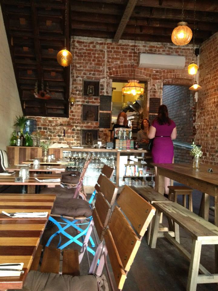 The fit out is super cute! Love all the old, exposed brick, the wooden tables and chairs and the fabulous old wooden beams running along the roof. It all works a treat.