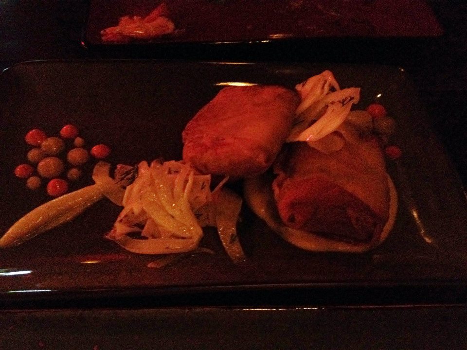 Finally it was time for pork and two parcels of slow roasted pork shoulder encased in crispy brik pastry arrived on top of jeruselum artichoke puree, with a side of fennel salad. I enjoy pork and this meat just melted from the slow cooking attention it had received. Fennel has become a massive favourite of mine this year and I enjoyed that it was included in this dish.