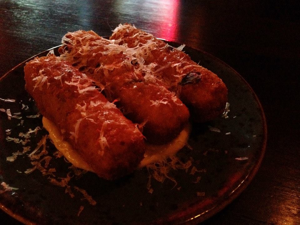 The dishes arrived as they were ready and up first were the chips. Each dish was explained in detail when they were presented. I’ll admit that I was very surprised at these ‘chips’. They seemed more like a croquette to me with their crumbed exterior, but from what we were told they were made of some pretty carefully prepared potato and came served on a manchego puree, a dash of truffle oil and a grating of more manchego cheese. Yes, they were tasty. Yes, they were something different. But would I have preferred something a little more standard and a little more generous in size, I’d probably say yes. My pin up chips for the year had been the Fattie Chips with Truffle Aioli at Laneway Lounge and they were only $9 and these three fancy fingers at Enrique’s were nice but give me the Laneway chips any day.