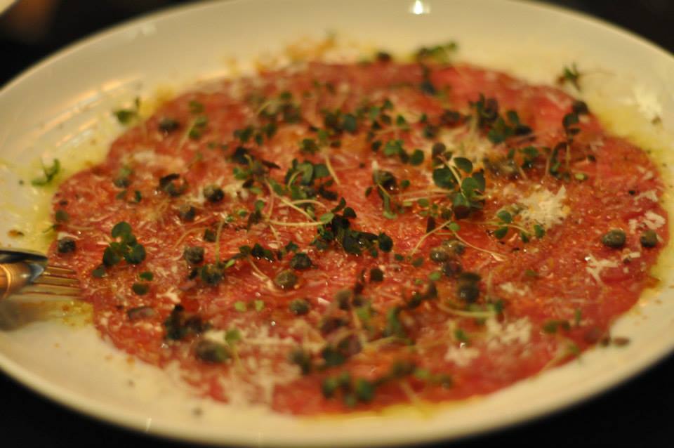 - Beef Carpaccio, Sicilian capers, parmesan, truffle oil, panna gratta ($24)