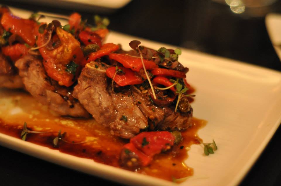 - Dorper lamb mini T-bones, roasted with olive and caper peperonata ($36)