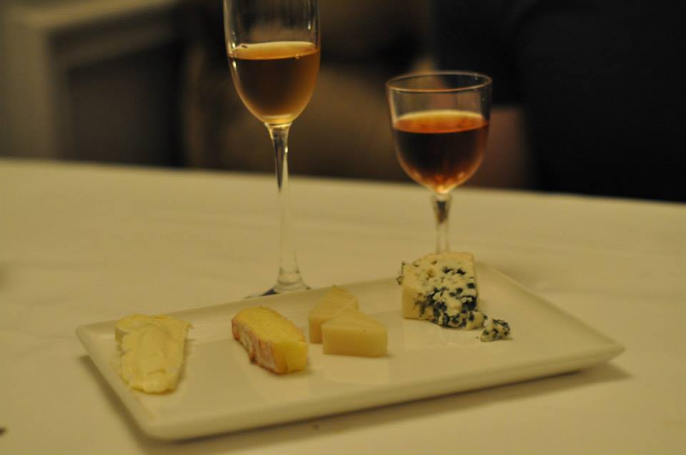 I could have almost declined cheese….. almost. But then it appeared. “Chariot de Fromage” with accompanied condiments (2005 St Stephan’s Crown Tokaji Aszu ‘3 Puttonyos’ – Budafok, Hungary). By far and away the most impressive cheese trolley I had ever seen! Sleek with steel and with strips of lights it was a modern wonder and I was that impressed before I’d even eaten any of the cheese. Harold asked how many we would like to try and we opted to stick to the standard order which was four different types and we left it to the expert as to which ones we would try. From the salty blue Roquefort, the dreamy creamy brie and the more crumbly cheddar it was all kinds of good and all the more enjoyable with the pickled grapes and fig paste on the side.
