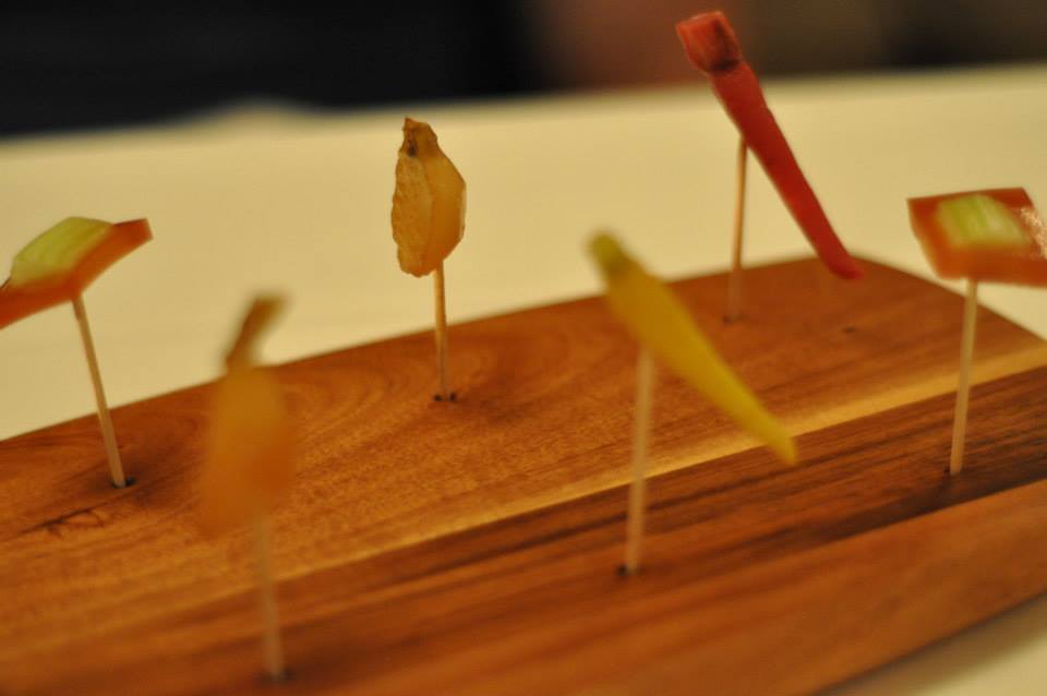 The Amuse Bouche was indeed amusing. Time to tick the vegies box with this line up – a preciously tiny fennel and ginger carrot, a perfectly turned vanilla turnip and a square of tomato, vodka and pepper jelly which suspended a piece of celery as if by magic. It looked impressive and each little morsel was a flavour explosion. Teamed with a very pleasant bubbly, NV Vollereux – Pierry-Epernay, France, it was a solid introduction and with the taste buds tantalised, we were ready for the first official course.