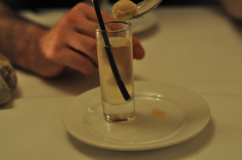 Now my pictures here don’t fully illustrate the show that was the arrival of the palate cleanser and it was a two person job. While Harold spritzed a heady rose scent into the air above our table, John placed a glass teapot on our table that cast a mysterious mist across the table. A splash of dry ice and some Earl Grey tea made for a chilly and refreshing beverage. It was served in a tall shot glass with a dainty scoop of ice-cream on the side. So get stirring, it was spider time! It was very different from the usual sorbet caper but my palate was still well cleansed after the experience and the taste was liquid yum.