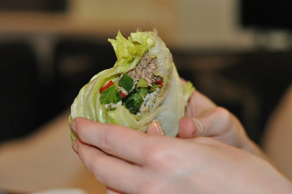 Soon enough it was all ready! I’m terrible at hand foods at the best of times, but I feel I was as elegant as possible as I eagerly chomped into my lettuce parcel and savoured the contrasting flavours of the herbed rice salad, zesty pickled veg and the flavoursome chicken. It really was delicious! Their marinades and sauces were all really punchy and it was just a winning combination. We both thoroughly enjoyed it and found it to be very filling.