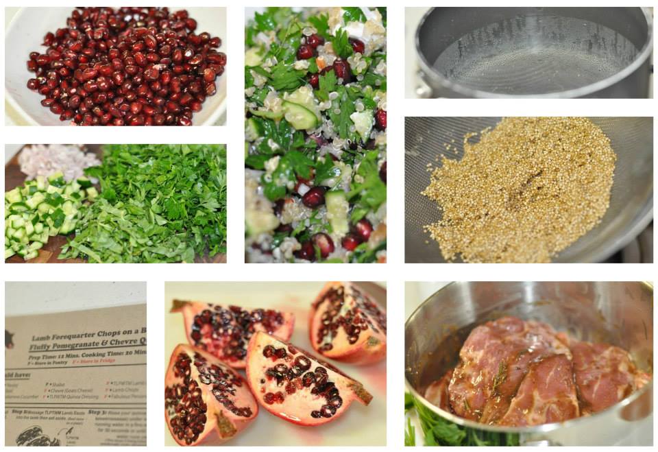 Had me very excited about the second meal on Sunday! Lamb Forequarter Chops on a Bed of Fluffy Pomegranate and Chevre Quinoa. I’m a big fan of lamb and while I probably tend to go with loin chops instead of forequarter, because forequarter tends to be a slightly fattier cut, there was still an abundance of meat on each of the chops that came for this meal.