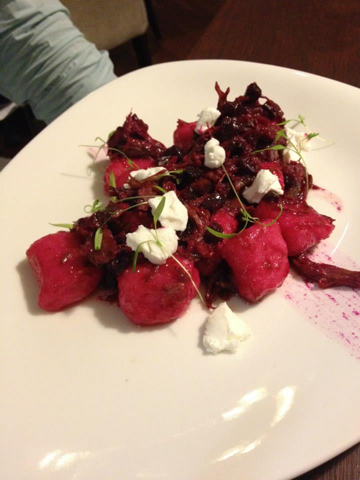On the mains front, Mr M ordered the Beetroot gnocchi, confit lamb, goats cheese, pesto ($35) which was a bold dark beetroot shade of pink. With the contrasting stark white from the goats cheese it plated beautifully. I had been very, very tempted to get this dish as I am a long time gnocchi fan. I remembered there was always a next time.